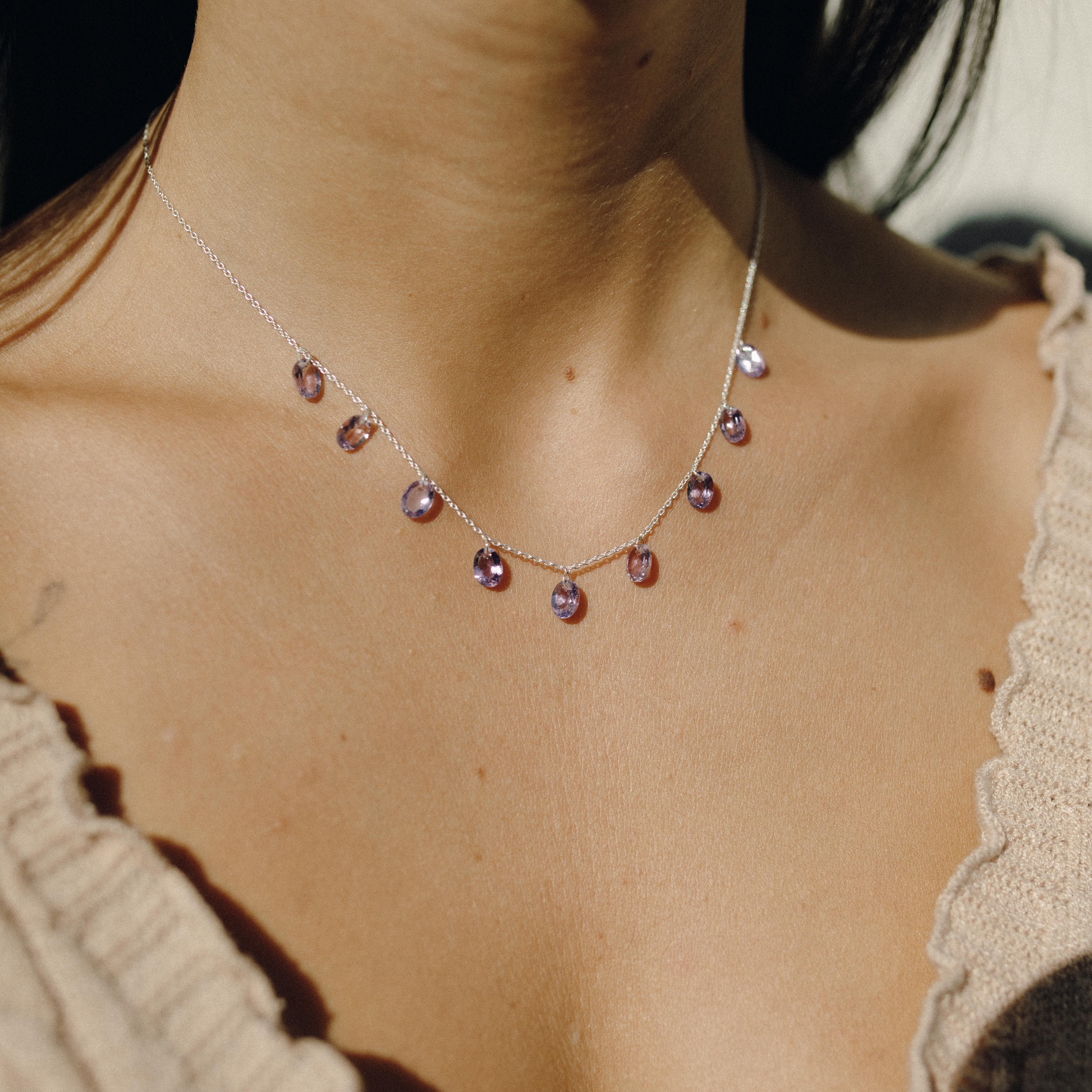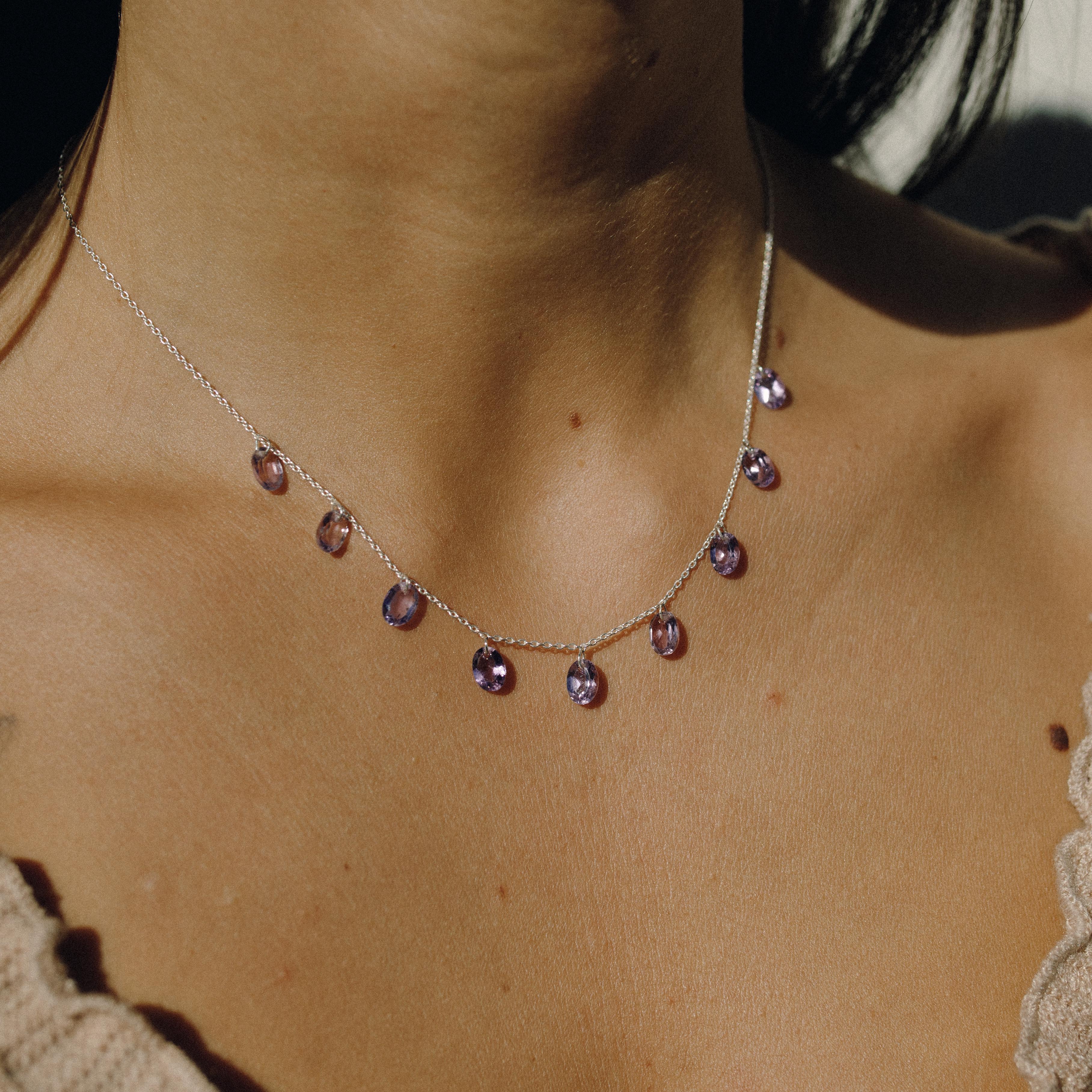 Indossare una collana con ametista significa portare con sé un simbolo di protezione, chiarezza e intuizione, un gioiello che unisce bellezza e significato profondo, ideale per vivere con equilibrio e fiducia ogni momento della vit