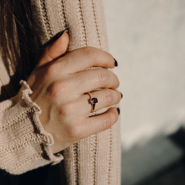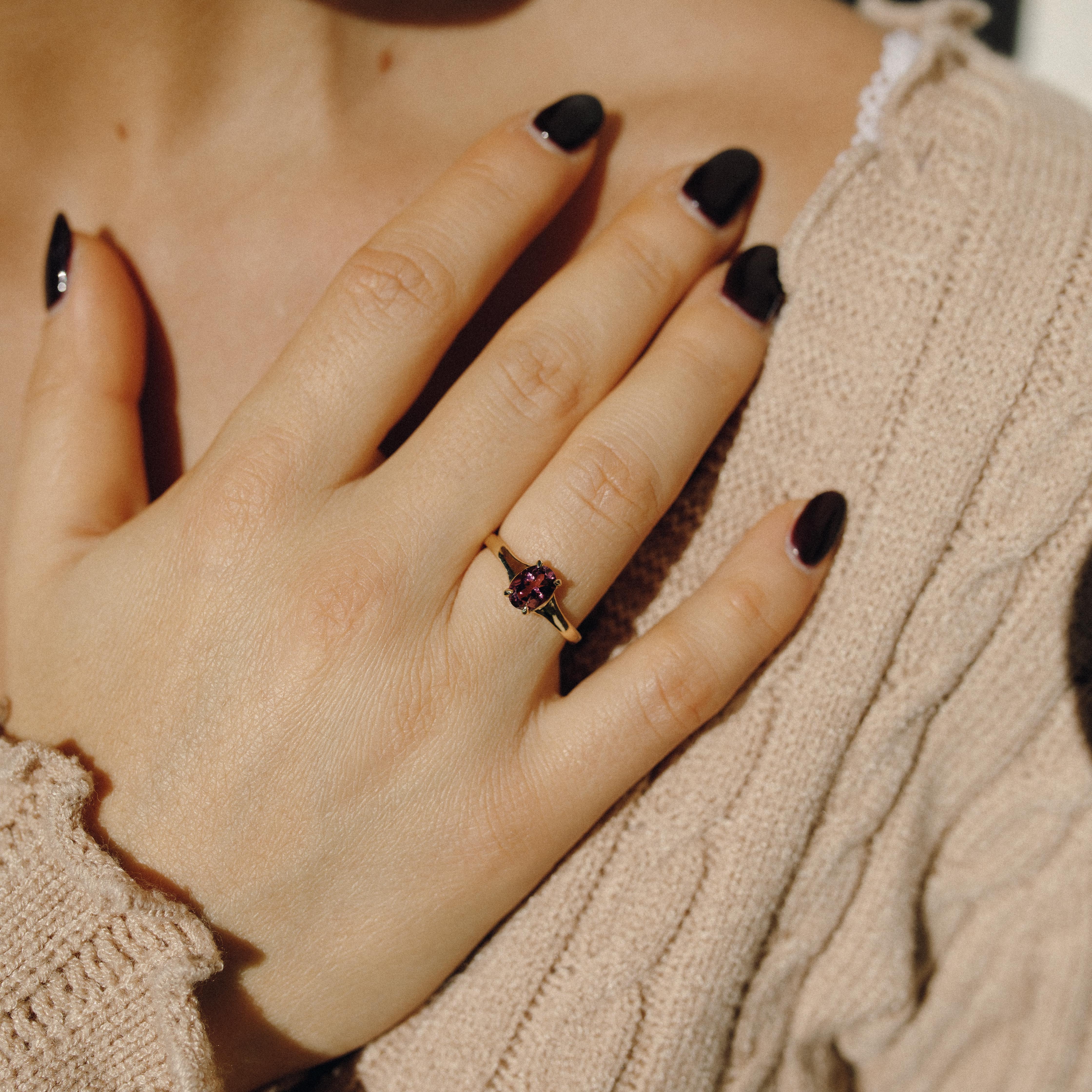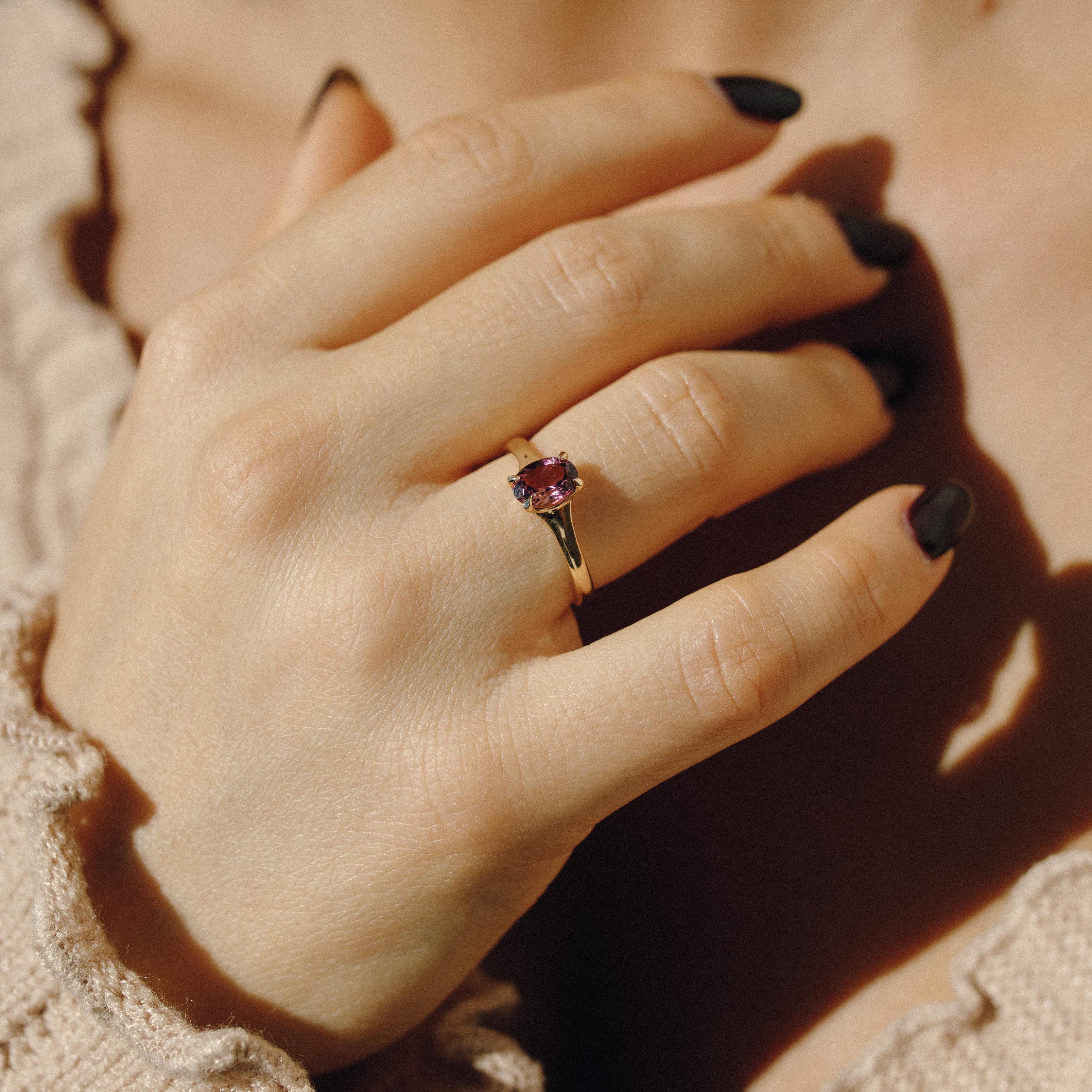 Anello artigianale in oro giallo 18 carati con tormalina rosa naturale, realizzato a mano nel mio atelier in Svizzera. L’oro 18 carati (750‰) offre una luminosità calda e intensa, ideale per valorizzare le sfumature delicate della tormalina rosa.