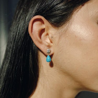 Il turchese, con il suo inconfondibile blu-verde vivace, evoca la purezza del cielo e la ricchezza delle antiche civiltà, rendendolo una pietra perfetta per chi desidera un tocco di storia e spiritualità nel proprio stile. Il design materico esalta la bellezza naturale di questa gemma millenaria, creando un contrasto affascinante con il montaggio a perno a lobo, elegante e confortevole. Indossare questi orecchini non è solo un'affermazione di moda, ma anche un supporto per il benessere emotivo, poiché il turchese è considerato una pietra stabilizzante, utile per equilibrare gli stati d'animo estremi.