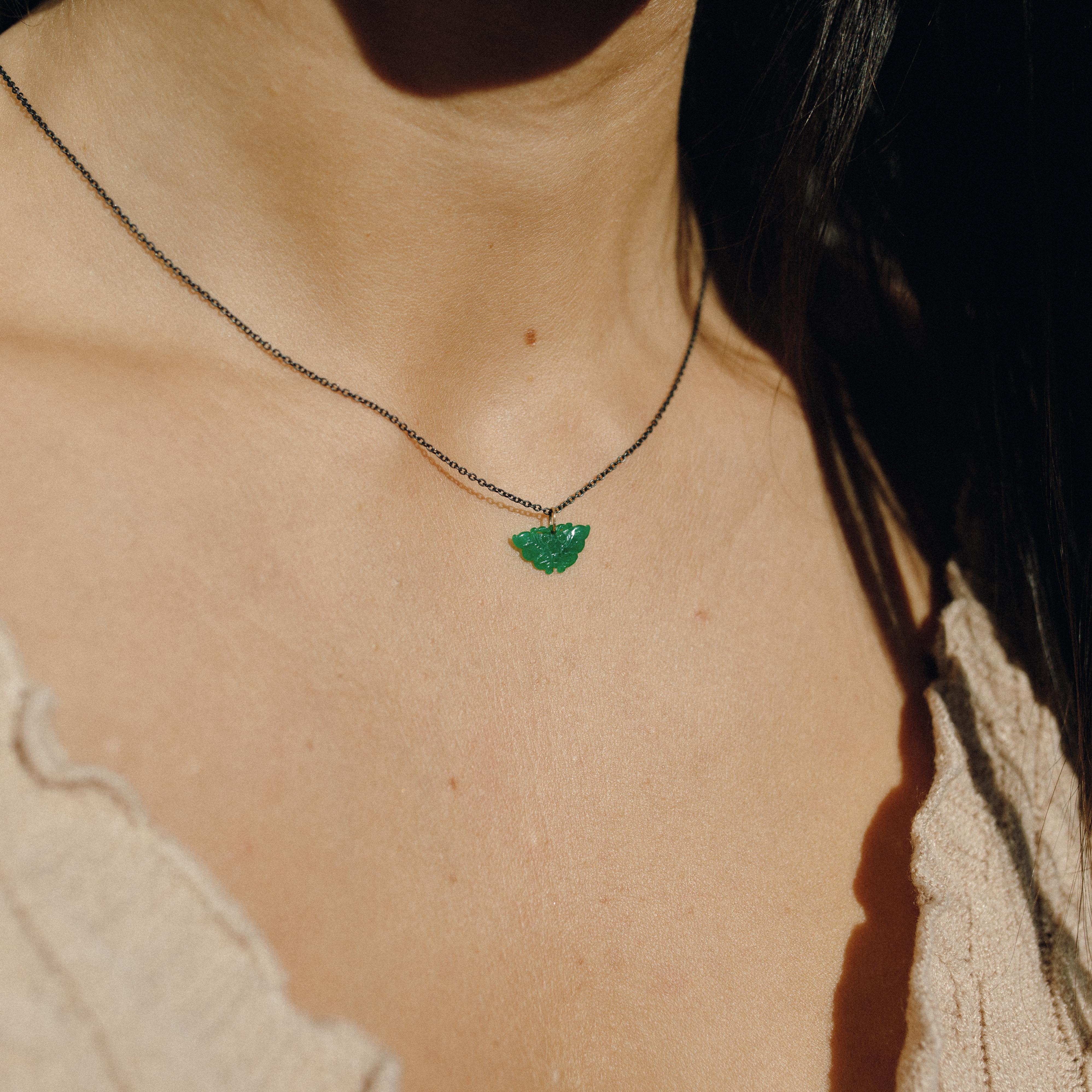 Falena - Giada pendant engraved with moth with yellow gold ring and brown chain