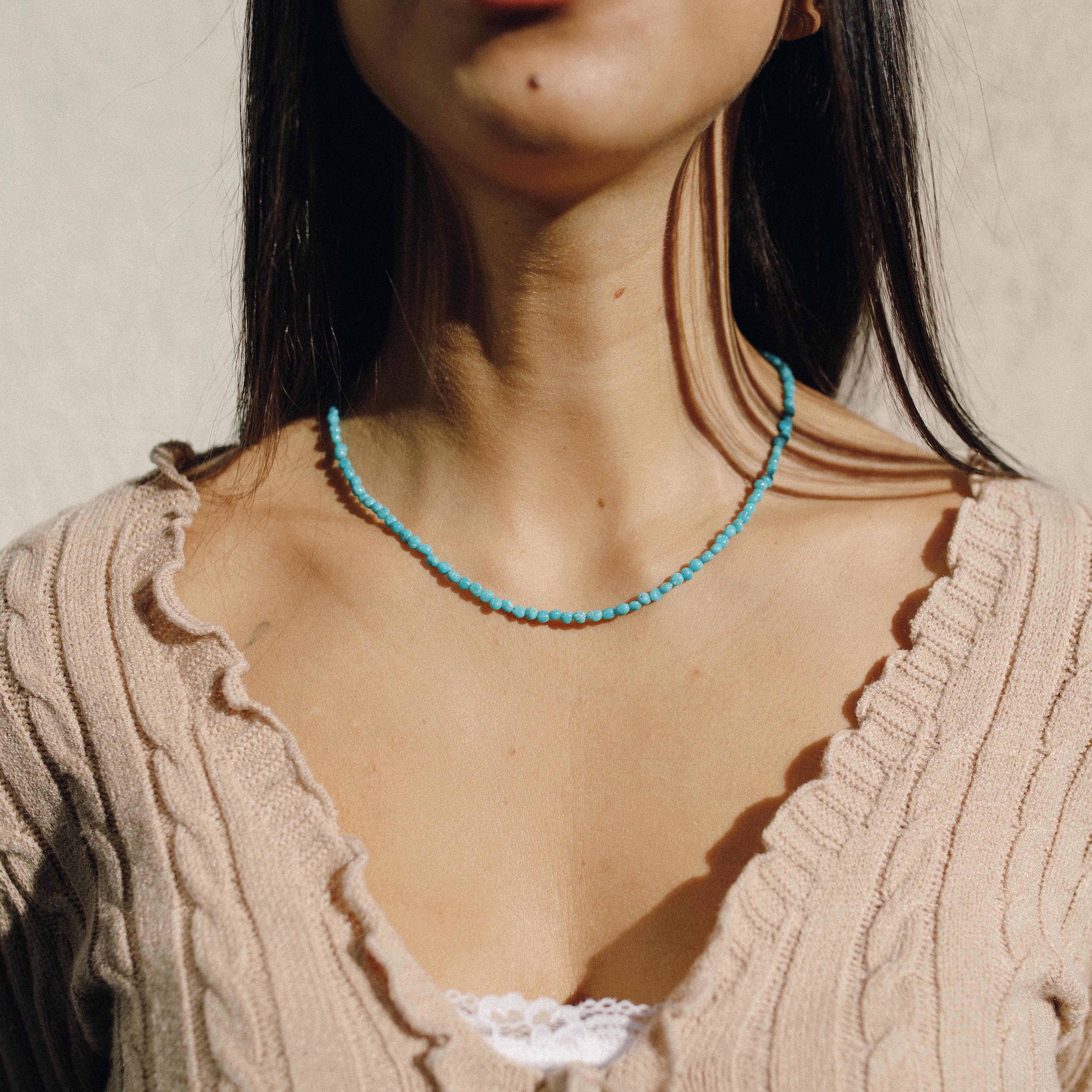 Cielo - Collana con turchese naturale e chiusura in oro giallo