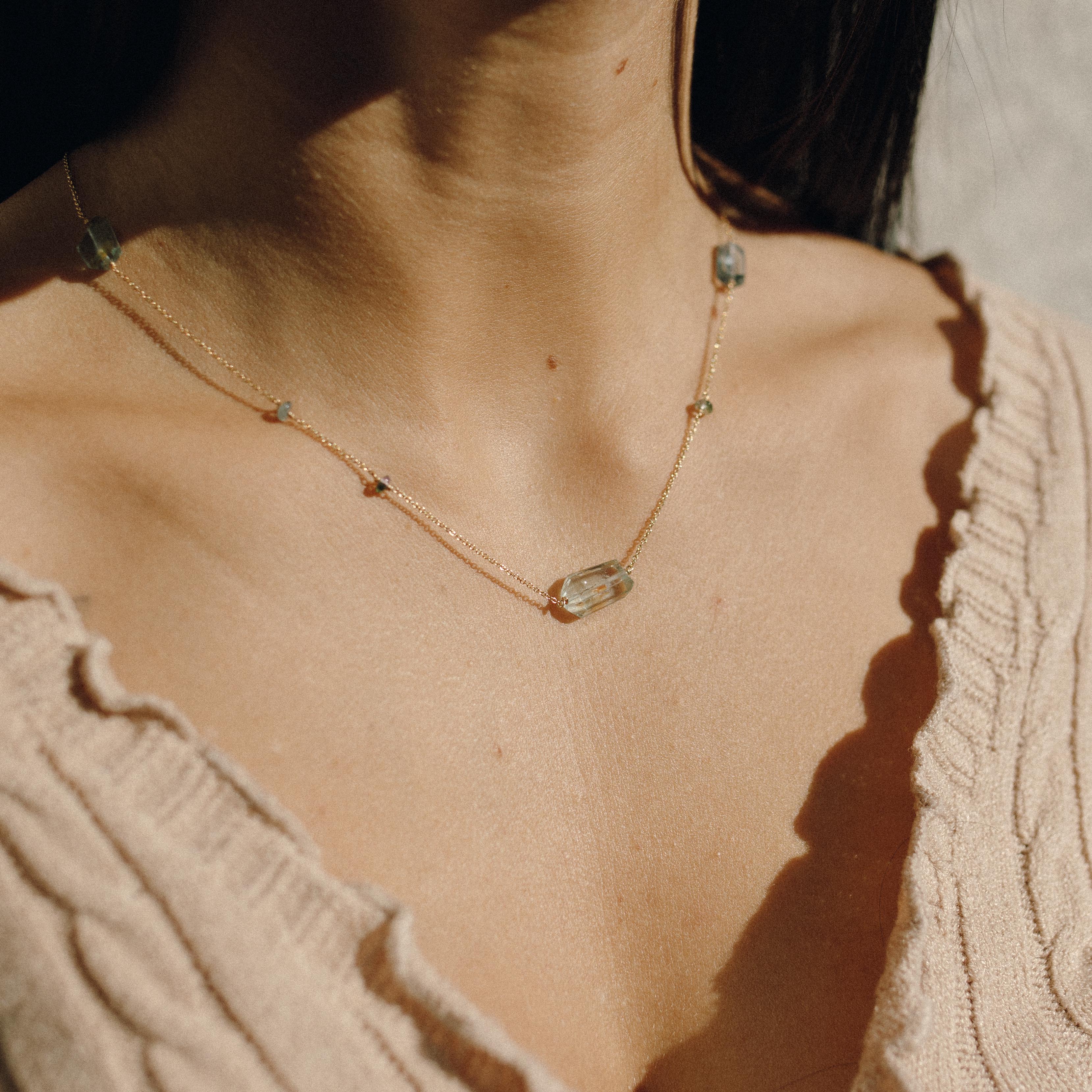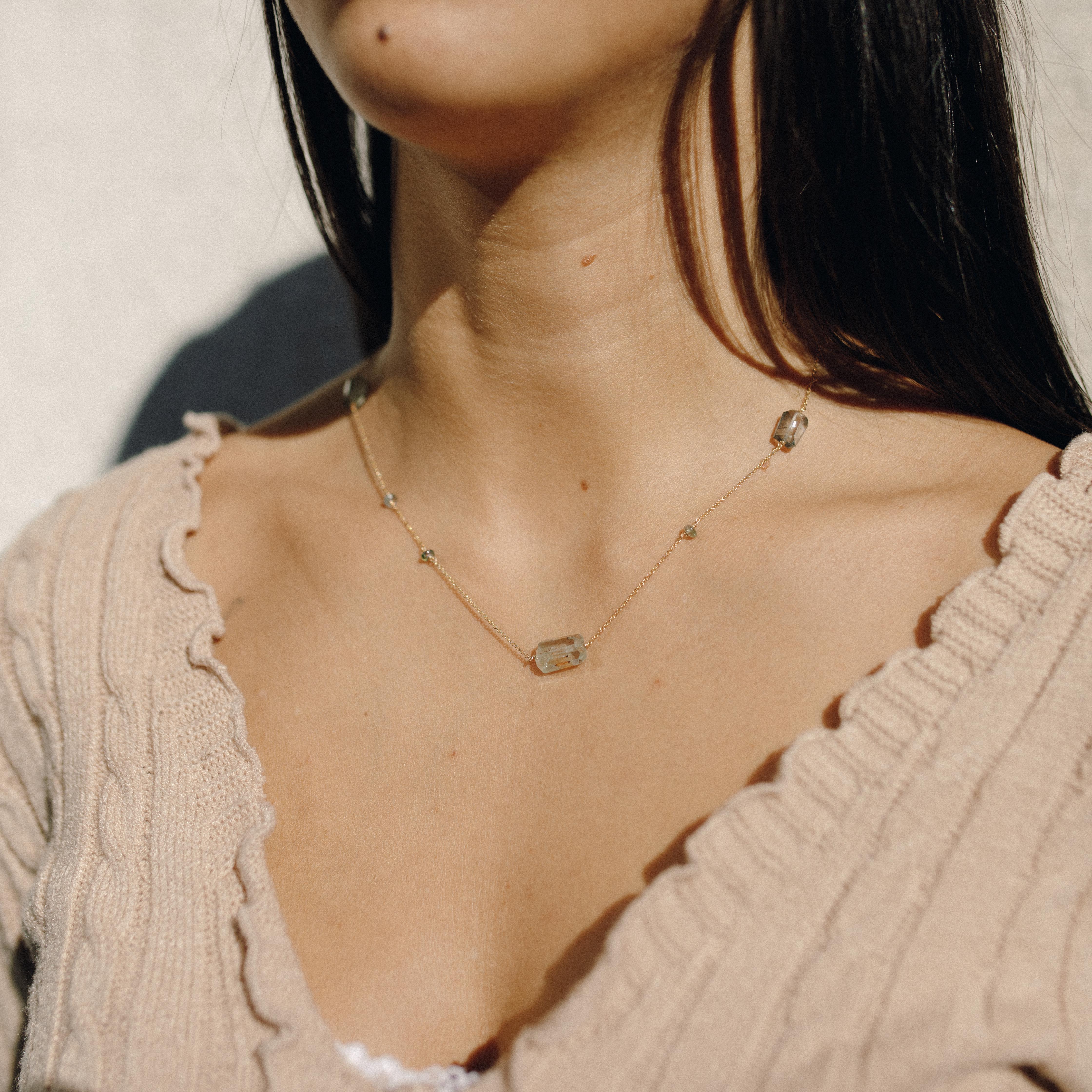 Libera - 18 carat yellow gold necklace with faceted aquamarine